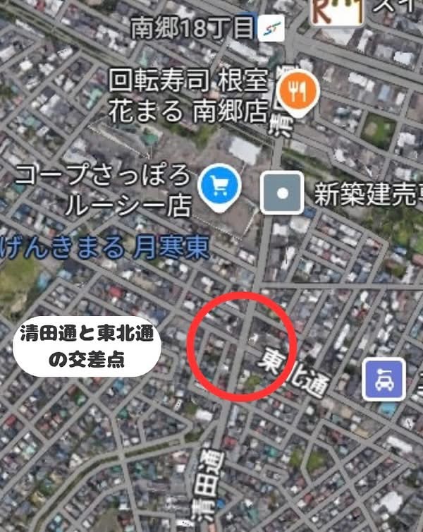 『清田通』と『東北通』が交わるこの場所は、清田区・豊平区・